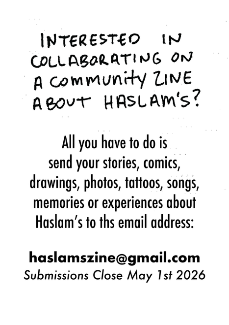 ON A COMMUNITY ZINE ABOUT HASLAM'S?